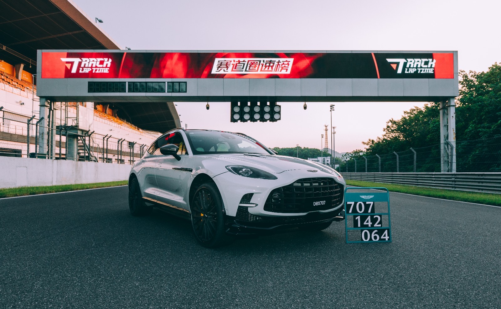【2022年10月6日,中国,上海】在刚刚过去的国庆假期,阿斯顿·马丁DBX707在浙江国际赛车场创造了1:42.064的惊人圈速,刷新了浙赛量产SUV最快圈速记录。